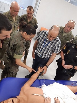 El Teniente General Gan jefe del Cuartel General Terrestre de Alta Disponibilidad y la Rectora de la Universidad CEU Cardenal Herrera presiden la clausura del Curso "Soportel Vital Básico/DESA y Trauma en Combate" realizado por el Batallón de Policía Militar
