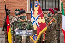 El acto ha sido presidido por el Teniente General Fernando García-Vaquero Pradal –Jefe del HQ NRDC-ESP-, se ha desarrollado respetando las medidas de protección frente al COVID y en él han participado representantes de las doce naciones aliadas presentes, hasta la fecha, en el HQ NRDC-ESP.