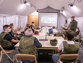 On the following day, the students moved to the Bétera military base, home of the NATO Rapid Deployable Corps – Spain Headquarters, where they were integrated in a planning group as Subject Matter Experts for a fictitious crisis management scenario. For this activity, the students were assisted by military mentors provided by the Headquarters.