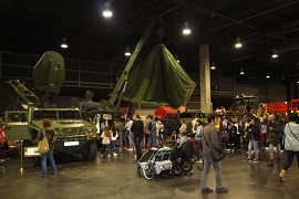 Personal y medios de los Regimientos de Transmisiones 21, Operaciones de Información 1, de Caballería “Lusitania” 8 de paracaidistas, de Defensa NBQ nº1, y de los Batallones de Policía Militar I del CGTAD y del de Intervención en Emergencias III hicieron las delicias de pequeños y no tan pequeños durante diez días de exposición. La posibilidad de superar la pista de aplicación, disfrutar de las exhibiciones caninas, subir a los vehículos militares, fotografiarse con distintos escenarios o de vestirse un caso, un chaleco anti fragmentos o un paracaídas supuso que los pequeños visitantes formaran largas colas para conocer de cerca nuestros medios.