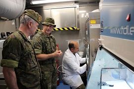 La demostración incluía una serie de estaciones en las que se presentaron las distintas capacidades que el RNBQ 1 pone al servicio del ET, algunas de ellas únicas, como son la descontaminación completa y certificada, la toma de muestras forense y la identificación confirmada mediante laboratorios desplegables.