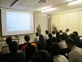 A la conferencia asistieron 2 clases de 4º de la E.S.O. (48 alumnos entre 16 y 18 años), que se mostraron muy interesados por las funciones propias del ejército y del Batallón, haciendo preguntas relacionadas con los requisitos de acceso, nivel de estudios exigido, capacidades que se pudieran desarrollar una vez accediesen a una relación de servicios de carácter temporal con las Fuerzas Armadas, como cursos y carreras a las que poder acceder una vez formasen parte de nuestro ejército, y conciliación de la vida laboral con la personal.