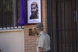 Posteriormente, tras conocer de primera mano las actividades que estaba realizando el Regimiento ese día, hubo un sencillo y emotivo acto en el que el Suboficial Mayor del ET descubrió un mosaico con el rostro del Sargento José Gabino Nve Hernández -caído en acto de servicio el 26 de mayo de 2003 en el accidente del Yak-42 en Trebisonda (Turquía)- en el edificio de aulas que lleva su nombre.
