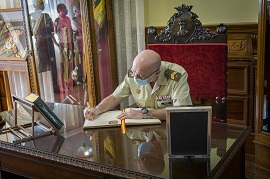 Para finalizar la jornada asistió a la inauguración del “Ala de Suboficiales Mayores” en la Sala de Banderas del Regimiento a la que asistieron los Suboficiales Mayores, que ya en la Reserva, sirvieron en el Regimiento. El Suboficial Mayor del Ejército de Tierra firmó en el Libro de Honor de la Unidad.