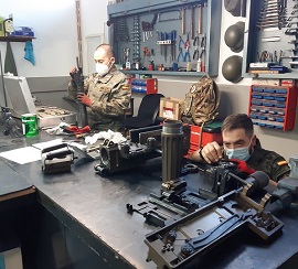 Uno de los apoyos consiste en calibración e hipocelométrico de armamento pesado. Además, están realizando mantenimiento correctivo de BMR y VAMTAC. Asimismo, realizan mantenimiento sobre TOW, Centauro, Pizarro, “Leopard” y Leopardo, VEC, MRAP (Lince y RG 31), TOA, vehículos ruedas (ligeros y pesados).
