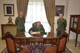Para finalizar la visita, y ya en la Sala de Banderas de la Agrupación, el General Jefe de la Brigada Logística escribió unas palabras y dejó su rúbrica en el “Libro de Honor” de la AALOG 61.
