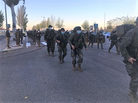 Acto seguido, se dio la salida que daba comienzo a la marcha de 10 kilómetros cuyo recorrido había sido previamente validado por la Jefatura de Apoyo a la Preparación Norte (JEAPRENOR), con 20 kilos de peso total entre el vestuario, equipo y armamento.