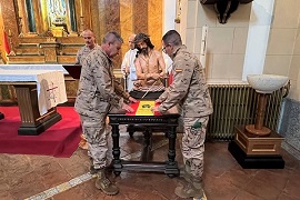 Así, el pasado lunes día 7 tuvo lugar en la capilla del acuartelamiento “Palacio Real” de Valladolid, sede de la 4ª Subinspección General del Ejército (SUIGE IV), una bendición y ofrenda al “Cristo de la Misión”, talla de un Ecce Homo del siglo XVII propiedad de la AALOG 61 y que está expuesta en dicha capilla. La ofrenda fue realizada por el personal que integra el NSE (National Support Element - Elemento de Apoyo Nacional) de la operación EUTM Mali XXI, que desplegará en breve en la base militar de Kulikoro (Mali). Una misión de la Unión Europea (UE) de formación del ejército maliense y que contribuye a dar estabilidad a esa zona del Sahel.