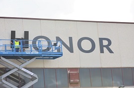 El 10 de noviembre ha finalizado la instalación de las letras que forman el lema de la Agrupación de Apoyo Logístico n.º 61 (AALOG 61-BRILOG): “Servicio, Sacrificio y Honor”, en la parte superior del edificio de talleres que la Agrupación tiene en la base militar “El Empecinado”.