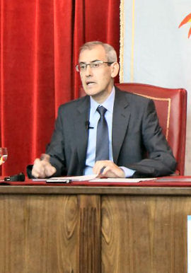El conferenciante, D. José Vidal Pelaz López, Profesor de Historia Contemporánea de la Universidad de Valladolid, expuso las crisis y tensiones en la Europa de la “Belle Époque” y el atentado de Sarajevo, los cuatro años de guerra de trincheras y los movimientos en retaguardia, acabando la exposición con una Europa renovada y la posibilidad de un armisticio de 20 años.