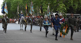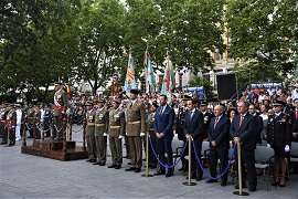 Las Unidades de Valladolid, Regimiento de Caballería “Farnesio 12”, Grupo de Caballería Acorazado “Villaviciosa XII” y Academia de Caballería (unidad que lideró la Parada), más la Unidad a caballo del Escuadrón de Escolta Real (EER) de la Guardia Real compuesto por: Mando, Escuadra de batidores y Banda de Clarines y Timbales, formaron ante la ciudadanía para honrar a su patrón, en un acto militar presidido por el General de Brigada, Director de la Academia de Logística del Ejército Excmo. Sr. D. Eloy Celma Maquieira.