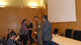 Bajo la presidencia del Coronel Jefe de Base Eduardo de Cobos Navarro, y con la asistencia de representantes del SEPE (Servicio Público de Empleo Estatal) y del Alcalde de Cabezón a las 11:00,en la sala multiusos de la OFAP (Oficina Apoyo Personal) tenía lugar la entrega de diplomas a los alumnos-trabajadores de este Primer Taller de Empleo.