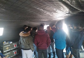 Posteriormente los alumnos pudieron visitar un Puesto de Socorro montado por la AALOG-61 junto con sus ambulancias. Después de esto el Suboficial Mayor del Regimiento les mostró la Sala Histórica.