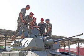 Tras ver la Sala Histórica del Regimiento y recibir otra conferencia, esta vez por parte del Jefe del GCAC “Villaviciosa” XII, se trasladaron a la línea de vehículos donde pudieron contemplar los vehículos y armamento de las dos unidades, así como la zona de simulación y las instalaciones de uno de los escuadrones.