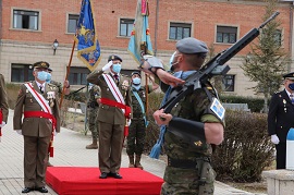 Posteriormente el jefe del regimiento, coronel Montero, dirigió unas palabras a los asistentes en las que les recordó la virtud de los valores militares y la importancia de la preparación, destacando al personal que desplegará en mayo formando parte del contingente Malí XX.