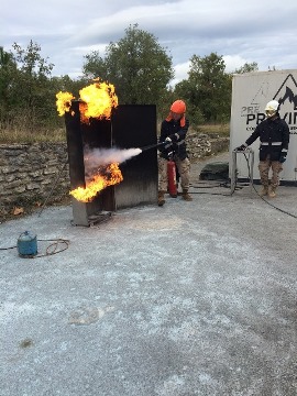 Durante esta quincena se han realizado varias jornadas encaminadas a instruir a determinado personal en conseguir los niveles básicos de conocimiento para la extinción de incendios. Estas jornadas estaban compuestas de una parte teórica y otra práctica, en las que se conocieron y practicó con los distintos tipos de medios de extinción, realizando las prácticas sobre fuegos reales, efectos sobre las personas, uso de los equipos autónomos, en definitiva, unas jornadas aprovechadas e instructivas.
