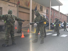 El RI. “Garellano” 45 realiza una desinfección contra el COVID-19 en las instalaciones de la Delegación de Gobierno del País Vasco (Vitoria-Gazteiz).