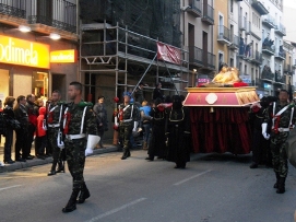 El pasado Viernes Santo una escuadra de militares voluntarios del Grupo de Transporte IX/41 acompañaron al Cristo Yacente durante la procesión del Santo Entierro