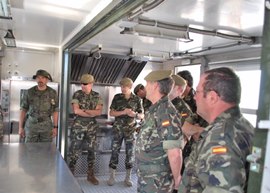 Durante su estancia, vieron y recibieron información sobre diverso material de campaña perteneciente a la Compañía de Personal, como contenedores de cocina, cooperativas, frigoríficos, lavavajillas y duchas.