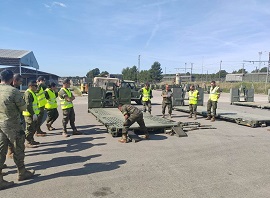Las jornadas se han realizado del 16 al 20 de mayo en las instalaciones de la AALOG 41 y se ha diversificado en una actualización de amarres de cargas en vehículos militares de transporte por carretera y en el mantenimiento de los propios amarres.