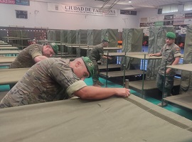21 Militares de la Agrupación de Apoyo Logístico nº41, (AALOG 41) perteneciente a la Brigada Logística, apoyan la solicitud de la Comunidad Autónoma de Aragón para el montaje de un albergue para 150 damnificados en el polideportivo de Tarazona como consecuencia del incendio declarado en la localidad de Añón de Moncayo (Zaragoza) el 13 de agosto.