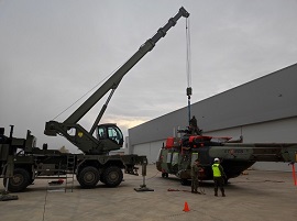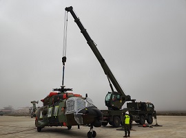 Durante la jornada del día 15 de noviembre, personal del equipo de grúas del Grupo de Mantenimiento II/41 (GMANTO II/41) de la Agrupación de Apoyo Logístico 41, perteneciente a la Brigada Logística, estuvo apoyando con su grúa CNPTT 15TM IVECO M320.45WM VREC las pruebas de carga y amarre de la aeronave NH-90, en las instalaciones del Batallón de Helicópteros de Maniobra III, ubicado en el acuartelamiento "Héroes del Revellín" de Agoncillo (La Rioja).