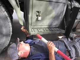 El vehículo estadounidense, compuesto por una cabeza tractora y una plataforma, que se dirigía al Campo de Maniobras y Tiro de San Gregorio (Zaragoza) para participar en el ejercicio Europe Defender, quedo inmovilizado en la localidad de Vic (Barcelona) el día 18 de mayo, teniendo que ser trasladado de madrugada al Acuartelamiento de Santa Eulalia (Sant Boi de Llobregat), donde tiene su base la Unidad de Servicios y Talleres 412 (UST-412) de la Agrupación de Apoyo Logístico 41, perteneciente a la Brigada Logística. Fue reparada en las instalaciones de la Unidad, por personal civil y militar de la misma.