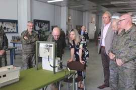 El General Director, Eloy Celma, expuso de manera breve las misiones y organización del Centro. A continuación la delegación pudo visitar las distintas instalaciones donde los alumnos, tanto de la Enseñanza Militar para Ingreso en la Escala de Suboficiales como los de la Escala de Tropa del Curso de Cambio de Especialidad, reciben las enseñanzas correspondientes a sus Especialidades Fundamentales. La Consejera quedó gratamente sorprendida por la cantidad de planes de estudio que se desarrollan y, sobre todo, por la calidad del personal y medios empleado para conseguir la formación y especialización que nuestro Ejército precisa.