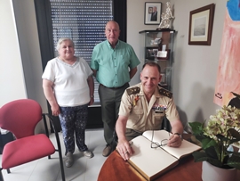 El pasado 7 de junio, el General Director de la Academia de Logística, Ignacio Aldama Orozco, visitaba las instalaciones de la residencia y talleres ocupacionales de la Asociación de familias de personas con discapacidad (AMIBIL). Recibían al mismo el Presidente, José Daniel Arias y la Directora Gerente, Lucrecia Jurado quienes, tras explicar de forma detallada la labor de la Asociación, invitaron al General Director a una visita a las instalaciones, comenzando por los talleres ocupacionales en los que explicaron las múltiples actividades desarrolladas, para continuar con los alojamientos y servicios de la residencia. El ambiente distendido presidió la visita en la que todos disfrutaron del cariño y agradecimiento recíproco.