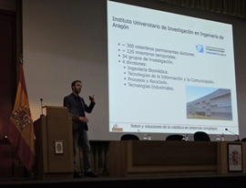 A traves de ella presentó los retos actuales de la robótica en entornos complejos y algunas soluciones y resultados alcanzados en los últimos años en el Grupo de Robótica, Visión por computador e Inteligencia Artificial de la Universidad de Zaragoza del que forma parte. Expuso técnicas de navegación autónoma de robots, su localización y el mapeo del escenario en diferentes entornos complejos, considerando robots terrestres (UGV), robots aéreos (drones, UAV) y barcos robotizados (USV).