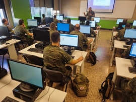 A continuación, comenzó la fase presencial con una duración de 4 semanas y una carga lectiva de 168 horas en las que se impartieron materias relacionadas con la Logística como el SALE o el SIGLE, Sesiones de Instrucción y Adiestramiento y de formación física, estas últimas orientadas a mejorar la capacidad de mando y de instrucción de sus futuros subordinados.