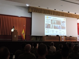 El coronel Molina, jefe de la Oficina Técnica de Apoyo al Ciclo de Vida (OTACV) del VCR 8x Dragón expuso los cometidos de esta oficina, novedosa tanto en concepción como en objetivos en el conjunto del ET y que integra a personal del ET, pero sobre todo a personal de las empresas constructoras del Dragón. Esta oficina está siendo la punta de lanza de los procesos de la digitalización del mantenimiento en el ET y materializará el compromiso de los fabricantes y del propio ET en el sostenimiento a lo largo de todo el ciclo de vida del Dragón.