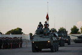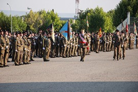 Tras el acto de homenaje a los caídos y la interpretación del himno de Caballería, la fuerza se dispuso para el desfile, que en esta ocasión contó con una escuadra de batidores a caballo y una unidad con diverso material blindado.