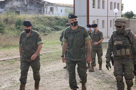Tras recibir los honores de ordenanza por parte de un piquete de la Unidad, se inició el recorrido por diferentes instalaciones en las que se encontraba personal del Batallón “Badajoz” realizando actividades de instrucción, en primer lugar se visitó la calle de combate en poblaciones donde presenció un tema de sección en reconocimiento de una avenida, a continuación se inspeccionaron las diferentes actividades que llevaba a cabo la Cía. de Mando y Apoyo, como la instalación de un puesto de mando de Batallón y ejercicios de puntería con mortero pesado de 120 mm. sobre TOA. También fueron objeto de la visita el 2º escalón del Batallón, así como el acondicionamiento de un edificio para la instalación del simulador de torre para el vehículo Pizarro.