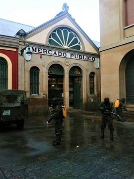 A petición del Alcalde de Pamplona, y ordenado por el General Jefe de la Brigada "Aragón" I, los "Cazadores del América" realizan labores de desinfección en los principales mercados municipales de Pamplona, en la lucha frente al COVID 19.