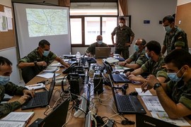 Respecto al segundo objetivo, la PLMM del BICC “FLANDES” constituyó el Puesto de Mando del Grupo Táctico de acuerdo a lo planeado en el ejercicio “TORO-20”, donde se incorporaron los correspondientes apoyos del RACA 20 y del BZ I. EL Puesto de Mando del Grupo Táctico “FLANDES” respondió perfectamente a las incidencias que se le plantearon, dirigiendo tácticamente los diferentes Subgrupos, la maniobra táctica la ejecutaron los jefes de Compañía y de Sección “moviendo sus unidades” en el simulador MINERVA . Asimismo, personal del Grupo de Caballería II/4 “HUSARES DE LA PRINCESA” también participó haciendo de enemigo en el escenario Skolkan.