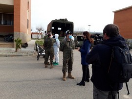Los micrófonos y cámaras de “Aragón TV” han filmado el proceso integral de desinfección de una instalación afectada por la COVID-19, desde que se recibe la misión hasta que, una vez cumplimentada, se regresa a la base.