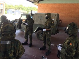Aragón TV filma una desinfección de la Compañía de defensa NBQ