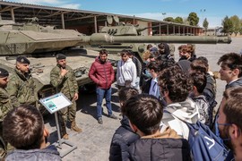 El pasado 21 de abril, 40 alumnos del colegio Santo Domingo de Silos (Zaragoza) visitaron las instalaciones de la Brigada “Aragón” I. Los citados alumnos con edades comprendidas entre 15 y 19 años se forman actualmente en Formación Profesional (electromecánica), siendo para ellos de gran interés la visita a los talleres de mantenimiento del Regimiento Acorazado “Pavía” 4.