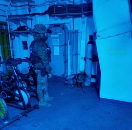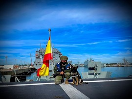 Los soldados Candia y Gainza junto con el perro Thea de la especialidad detección de drogas y estupefacientes de la sección canina de la policía militar del Batallón de Cuartel general I, participaron del 27 de noviembre al 2 de diciembre en el mayor ejercicio de unidades caninas del año 2022 centrado en la base de la Armada de San Fernando en Cádiz, con hasta 43 equipos guía y perro de las unidades de Infantería de Marina de la Armada, los Ejércitos de Tierra y el Aire y el Espacio, Policía Nacional, Guardia Civil y el Centro Militar de la Defensa.