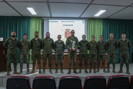 Para finalizar se entregó el trofeo al Batallón de Carros 'Flandes' I/4 que fue recogido por el teniente coronel Sánchez, quien además de estar al frente del mismo, es uno de los integrantes de diversos de los equipos que representan a su propia unidad y a la brigada.