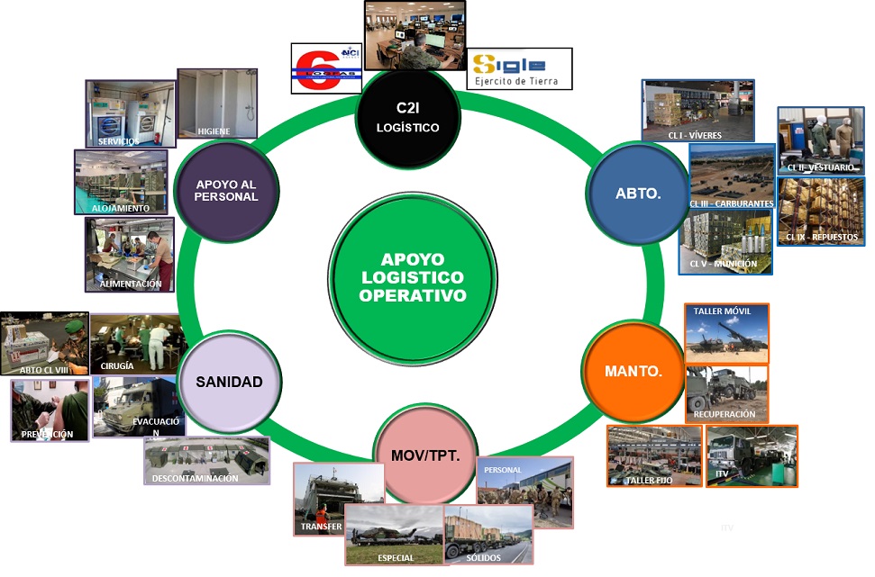 Además, como parte de sus actividades de adiestramiento logístico diario, la Brigada Logística complementa la estructura permanente de apoyo logístico y sanitario en territorio nacional, proporcionando el apoyo logístico operativo necesario para el funcionamiento y adiestramiento a todas las unidades del Ejército, en las siguientes áreas: