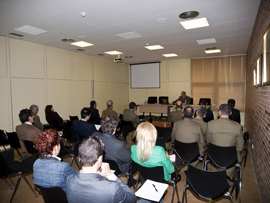 Así mismo, como novedad en esta edición, el coronel Calvo González-Regueral, Jefe de Estado Mayor de la Brigada Logística impartió una charla sobre “Relaciones Empresa – Fuerzas Armadas” a la que asistió un elevado número de representantes de las empresas participantes en esta feria. En esta charla, el coronel Calvo explicó la organización del Ministerio de Defensa, centrándose en aquellos organismos del mismo a través de los cuales las empresas interesadas pueden establecer una relación contractual con el Ministerio o con los Cuarteles Generales de los Ejércitos.