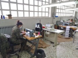 En el marco de las ayudas y colaboraciones que las Agrupaciones de Apoyo Logístico (AALOG,s) pertenecientes a la Brigada Logística (BRILOG) están prestando a los organismos oficiales y población civil en esta situación de crisis sanitaria, es de destacar la elaboración de mascarillas de protección facial que se están confeccionando en los talleres de costura y guarnicionería de las propias unidades logísticas.