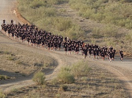En el contexto de la celebración del 339 Aniversario, los hombres y mujeres del Regimiento 'Pavía', todos a una, se lanzaron a la carrera para recorrer 'impertérritos' lugares emblemáticos del CENAD 'San Gregorio', donde las unidades de nuestro ejército alcanzan sus mayores cotas de adiestramiento.