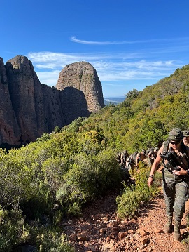 Durante una jornada con una meteorología amable, se recorrió una distancia de 11,650 Km, salvando un desnivel positivo de 600 m, incrementando con esta actividad la cohesión de la unidad y la resistencia física y del personal.