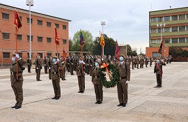 En el Acto se llevó a cabo la imposición de la Corbata Conmemorativa de la Operación Balmis al Guion del Regimiento de Pontoneros y Especialidades de Ingenieros nº12 y a los Guiones del Batallón de Pontoneros I/12 y del Batallón de Especialidades II/12 en reconocimiento al trabajo realizado durante la pandemia contribuyendo a prevenir y contener la transmisión del virus y mitigar su impacto sanitario, social y económico, mostrando así su compromiso con el apoyo a la sociedad española.