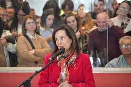 En la terminal de salida del aeropuerto de Badajoz, la titular de Defensa dirigió unas palabras a los militares que viajaban a Líbano, así como a sus familias. Además, subió al avión para despedirse personalmente de los integrantes del contingente que había cogido el vuelo en el aeropuerto de Madrid. Para todos ellos, tuvo palabras de ánimo y apoyo, destacando su profesionalidad y la tranquilidad de saber que la misión será cumplida con éxito