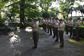 Durante el desarrollo del acto, en el jardín de San Carlos, la Unidad de Música del Cuartel General del Mando de Apoyo a la Maniobra interpretó los himnos nacionales de España y Gran Bretaña y la marcha oficial de la Batalla de A Coruña.