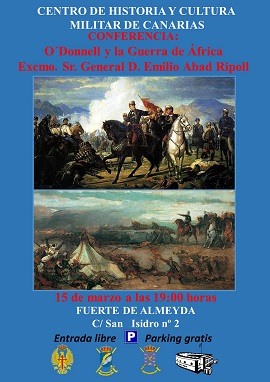 El próximo jueves día 15 a las 19:00h, en el Establecimiento de Almeyda, se impartirá por parte del Excmo. Sr. General D. Emilio Abad Ripoll,la conferencia “O’Donnell y la Guerra de África”. Aprovechando la misma se expondrán una serie de libros relacionados con tan célebre personaje, así como algún fondo museístico relacionado con el mismo.